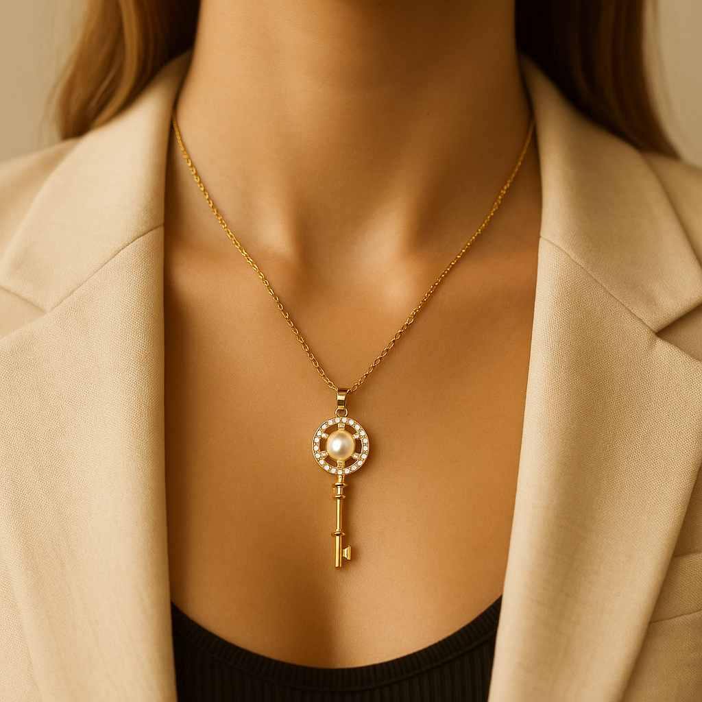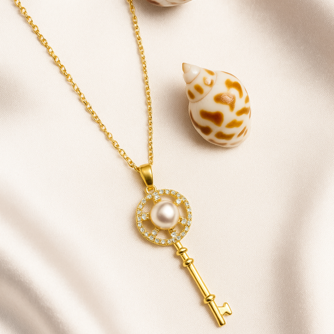 Gold Key Pearl Necklace - kaayujwellery.com
